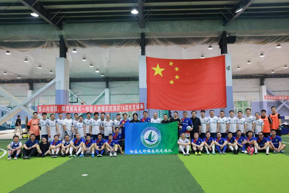 金秋送爽,天高云淡。为庆祝新中国76周年华诞,9月27日下午,由哈医大肿瘤医院工会举办的“医心向祖国 绿茵展风采”足球赛开幕,全院足球运动员及爱好者怀着喜悦与期待齐聚绿茵场,共同开启这场属于医者的足球盛宴。