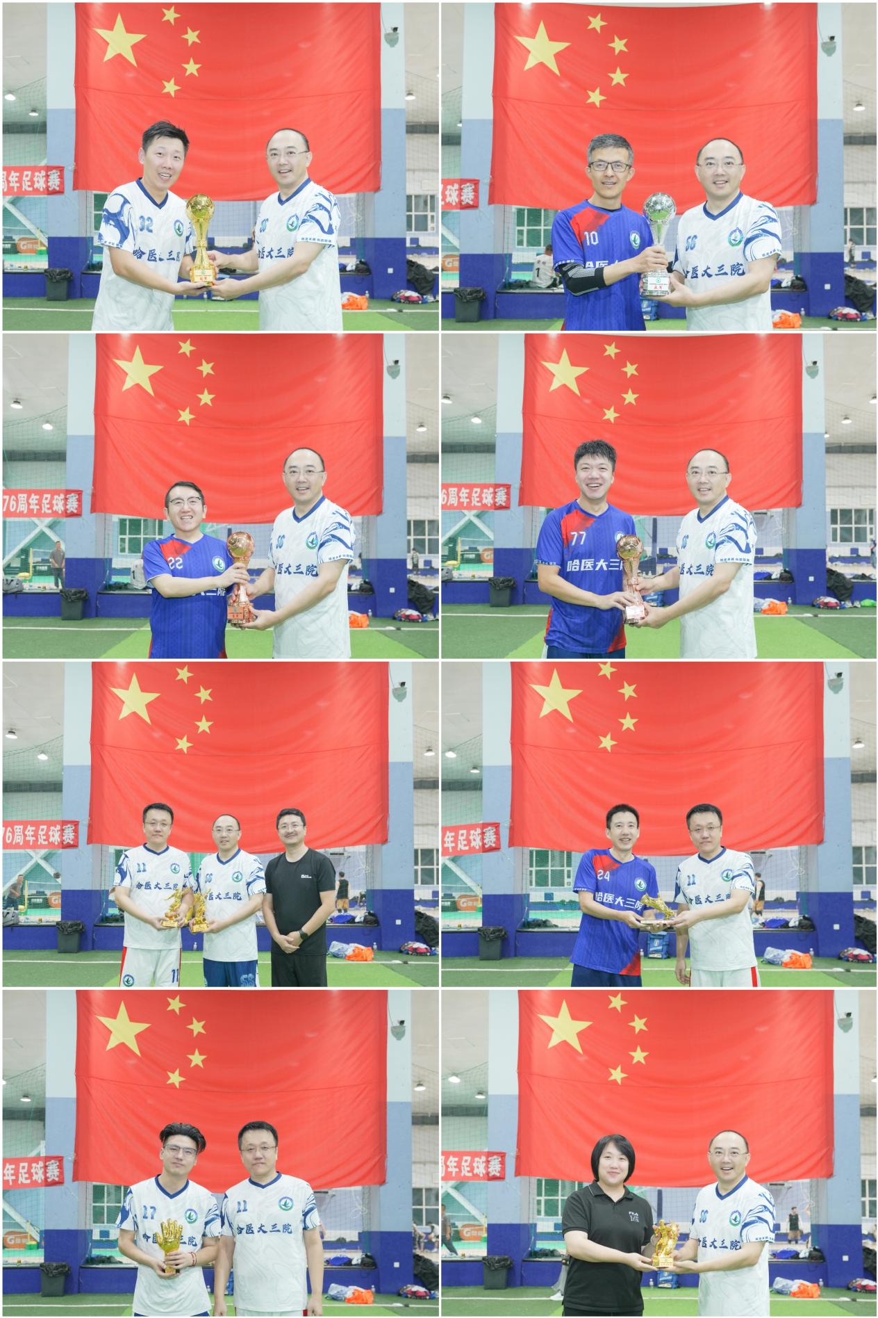 最终,经过激烈角逐,各奖项尘埃落定:机关队斩获冠军,外科队夺得亚军,放疗队、内科队分别获得季军和殿军;院长邰升、副院长刘江恒被评为优秀球员,于洪伟凭借出色表现摘得金靴奖,林超帅荣获金手套奖。