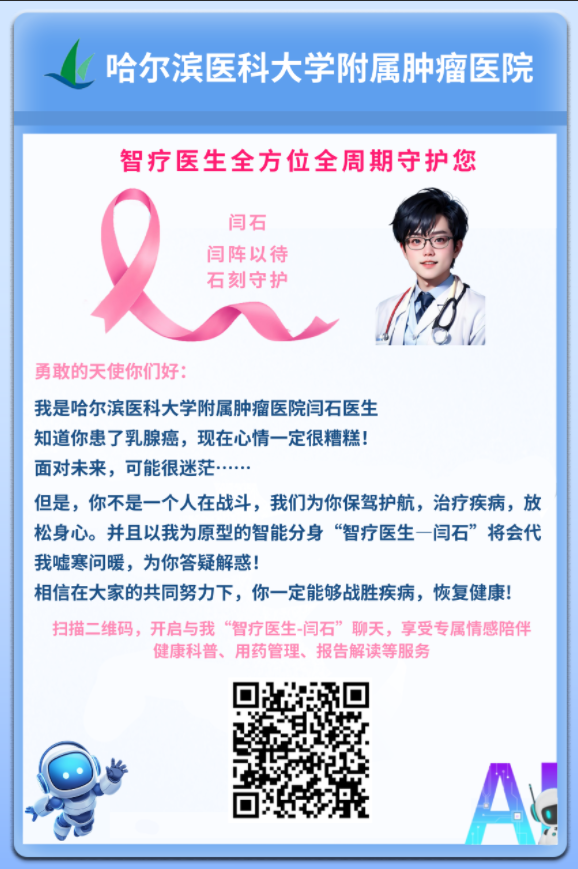 在这个充满关爱的粉红十月,“智疗医生”小程序以智慧为笔,以温暖为墨,为乳腺癌患者的康复路描绘光明图景。未来,哈医大肿瘤医院将继续探索智慧医疗与肿瘤慢病管理的深度融合,为更多患者带来高质量的健康服务。