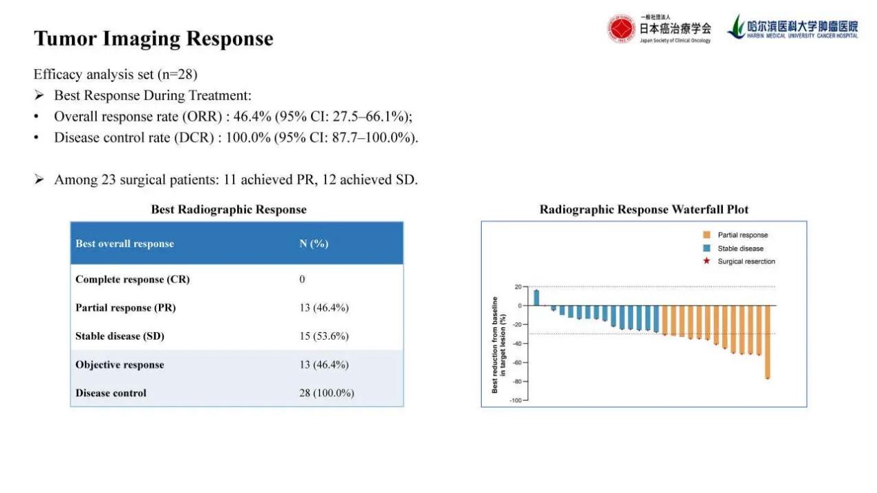 截至2025年4月,该研究共入组28例患者,客观缓解率为46.4%,疾病控制率为100%,所有入组患者病情均得到有效控制。已完成手术的23例患者均实现肿瘤完全切除,联合方案的效果显著优于传统治疗方案。同时,在入组的8例低位直肠癌患者中,5例成功实现保肛。这一结果不仅帮助患者维持了身体机能的完整,更从根本上为其提升远期生活质量奠定了重要基础。