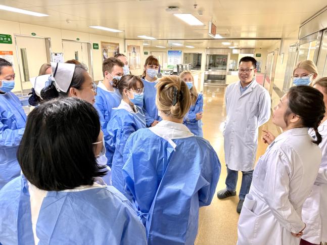 近日,依托哈尔滨医科大学中俄师生短期交换项目,俄罗斯伊尔库茨克国立医科大学护理学院师生代表团一行10人来访哈医大肿瘤医院,开展系列护理交流活动。这是医院首次接待国外护理参观团,旨在促进中俄护理领域理念互鉴、技术共享,共同探索护理人才培养与临床实践新路径。