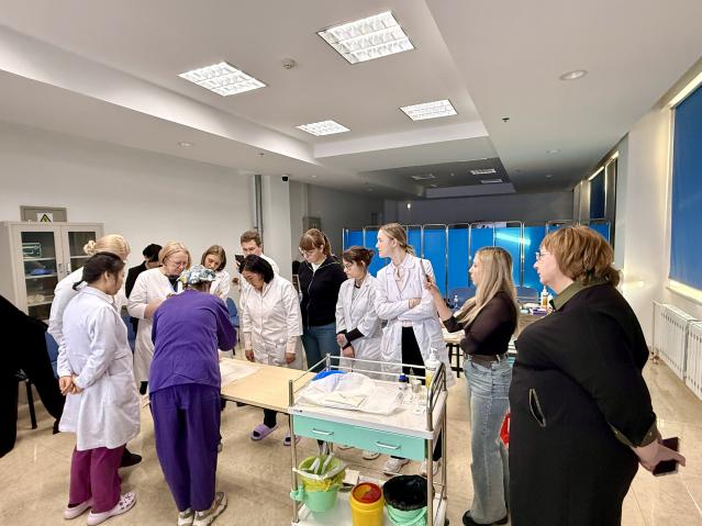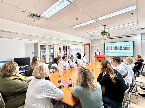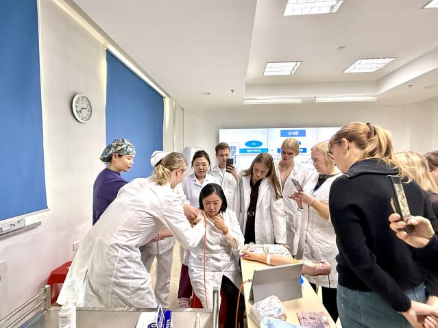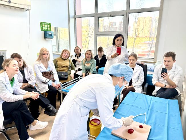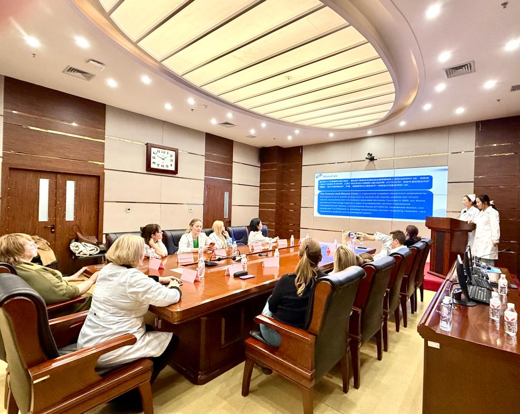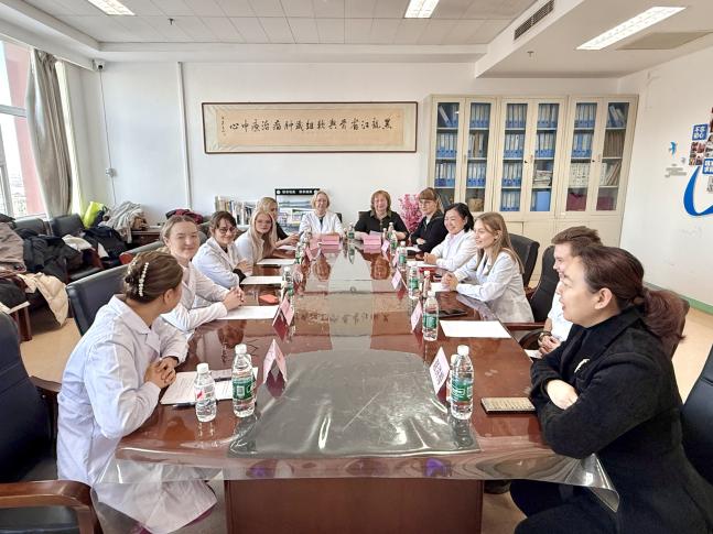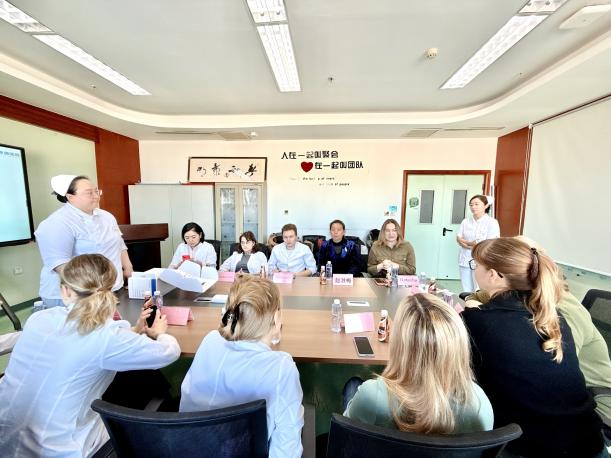 交流伊始,医院护理部主任祁晓娜全面介绍医院发展概况、护理团队建设成果、教学培养体系及专科护士规范化发展路径。在11月26日至28日为期三天的实地参访中,代表团先后走进图书馆、职工之家、健康管理中心、临床技能实践教学中心及多个临床科室与功能区域,各科室以中、英、俄多语进行讲解,展现国际化专业风貌。