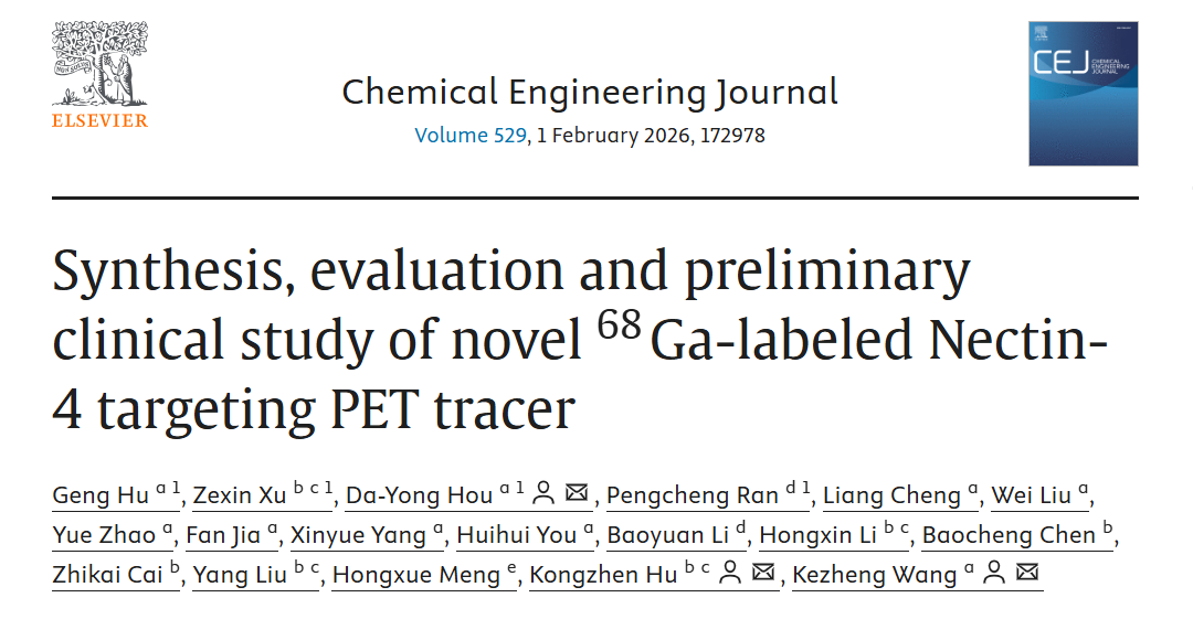 近日,哈医大肿瘤医院PET/CT-MR中心王可铮教授、侯大勇教授与南方医科大学南方医院胡孔珍教授团队合作,在国际权威期刊《Chemical Engineering Journal》(IF:13.2)发表最新研究成果。这项研究成功研发出一种针对Nectin-4靶点的PET/CT分子影像示踪剂——[⁶⁸Ga]Ga-INN3,为多种实体肿瘤的早期精准诊断与治疗开辟新路径。