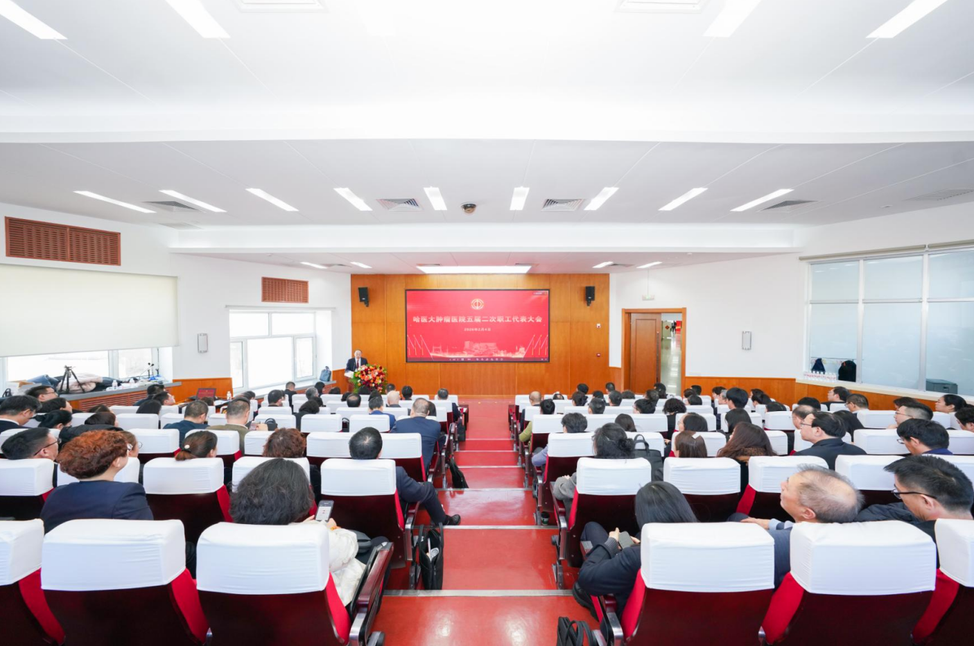 总结表彰大会后,召开哈医大肿瘤医院五届二次职工代表大会。会议由党委副书记、工会主席袁贵生主持。