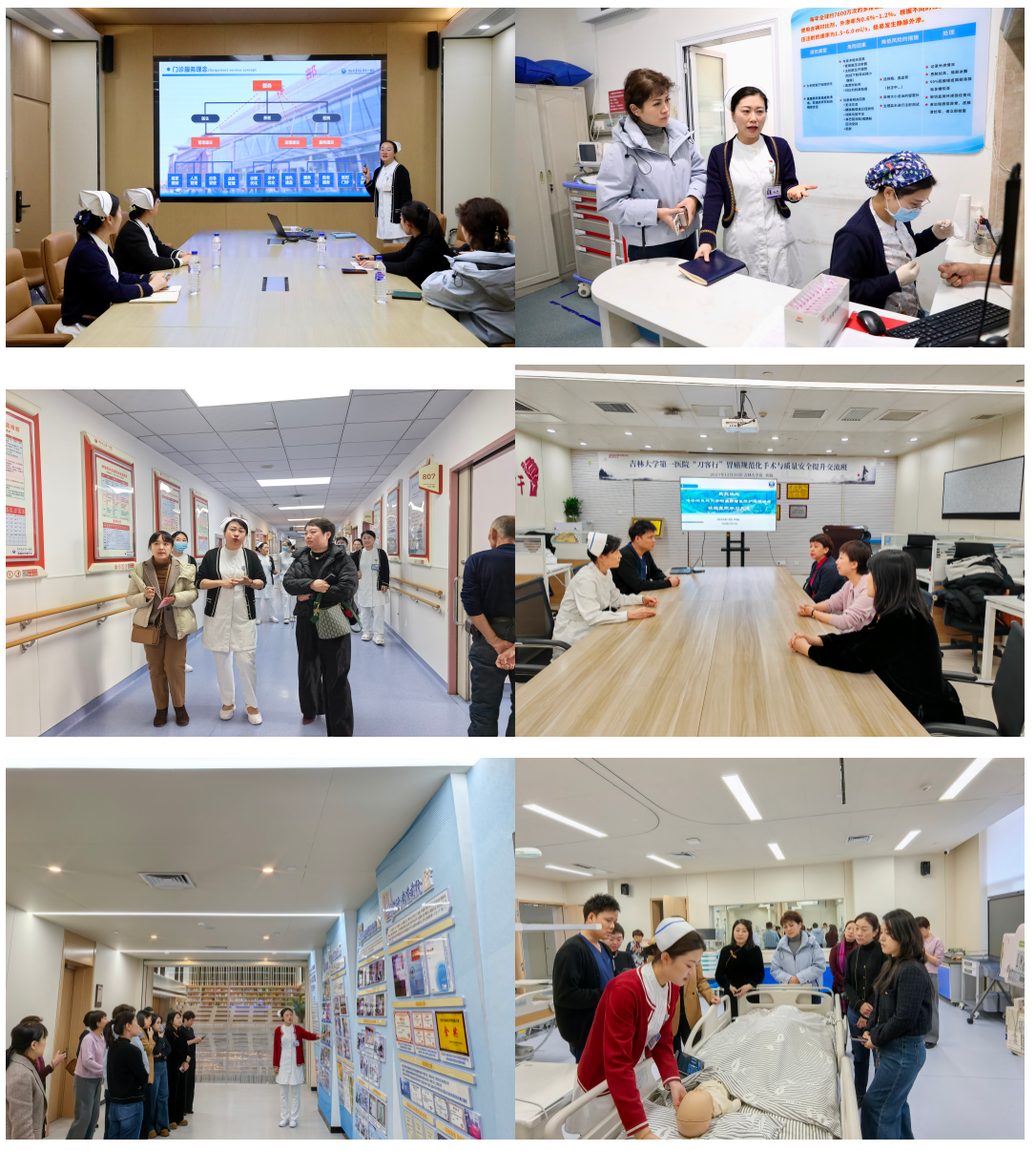 当日下午,护理管理团队深入吉大一院门诊部、医技科室、肿瘤科、胃肠外科及手术室等重点区域进行实地参观,并与各科室护士长及相关负责人开展点对点交流。