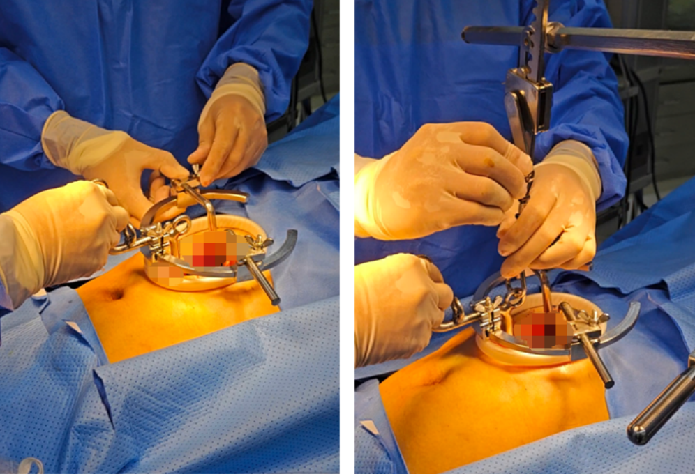 该创新装置以机械悬吊方式替代二氧化碳充气,通过提拉腹壁构建手术操作空间。术中预先开放的小切口,既完整保留腹腔镜手术创伤小、恢复快的核心优势,又融合开放手术操作灵活、视野直观的特点,实现传统外科智慧与现代腔镜技术的完美融合,为胃癌微创治疗开辟全新路径。