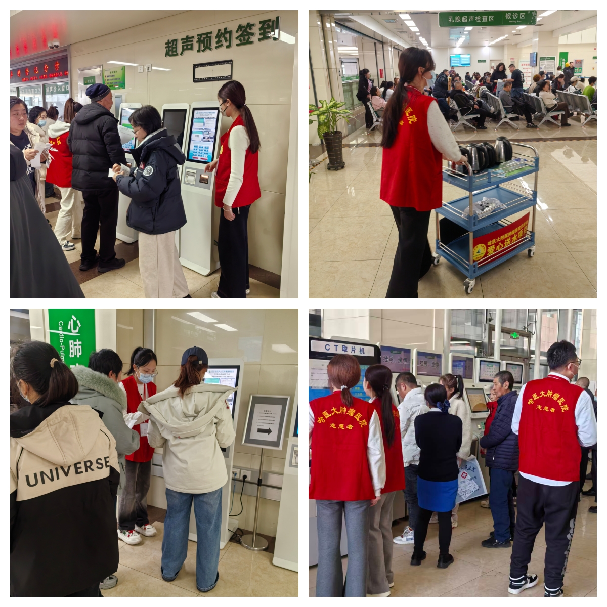 活动当天,医院门诊大厅内,身着统一红色志愿马甲的志愿者们分工明晰、配合默契,在患者往来密集的核心区域开展便民服务,成为门诊楼里一道亮眼的风景线。志愿者们化身“暖心向导”,主动为就诊患者及家属提供精细化导诊、一站式咨询等服务。他们耐心细致地指引科室方位,清晰讲解就医全流程,精准解答医保报销、就诊预约等问题,重点针对老年、行动不便等特殊患者群体,全程贴心帮扶、全程陪同引导。此举切实减少患者往返奔波、反复问询的麻烦,大幅优化就诊流程,有效提升广大患者的就医舒适度与体验感。