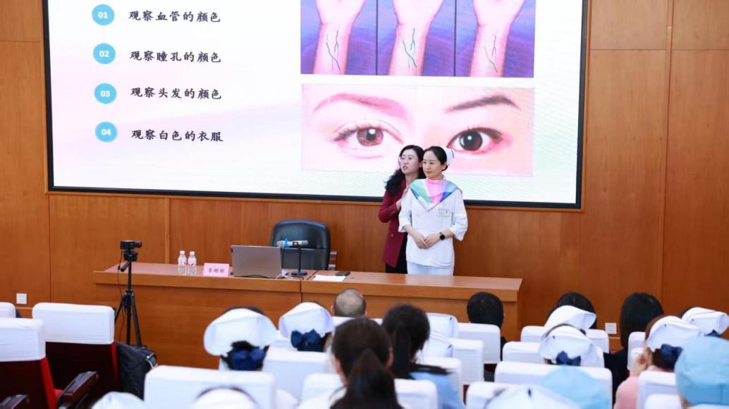 李珊珊主任围绕“礼润芳华、仪显担当”“色润白衣、美践初心”两大主题,将礼仪素养、家风传承与色彩美学有机融合,为女性医护工作者献上一份实用的形象提升指南。她提出“好形象、好礼仪、好家风、好担当”的递进逻辑,强调将家风礼仪融入护理工作的重要性。同时她着重讲解肤色测试、搭配技巧与场景用色原则,现场开展色彩搭配互动,助力女性医护工作者实现内外形象双向提升。