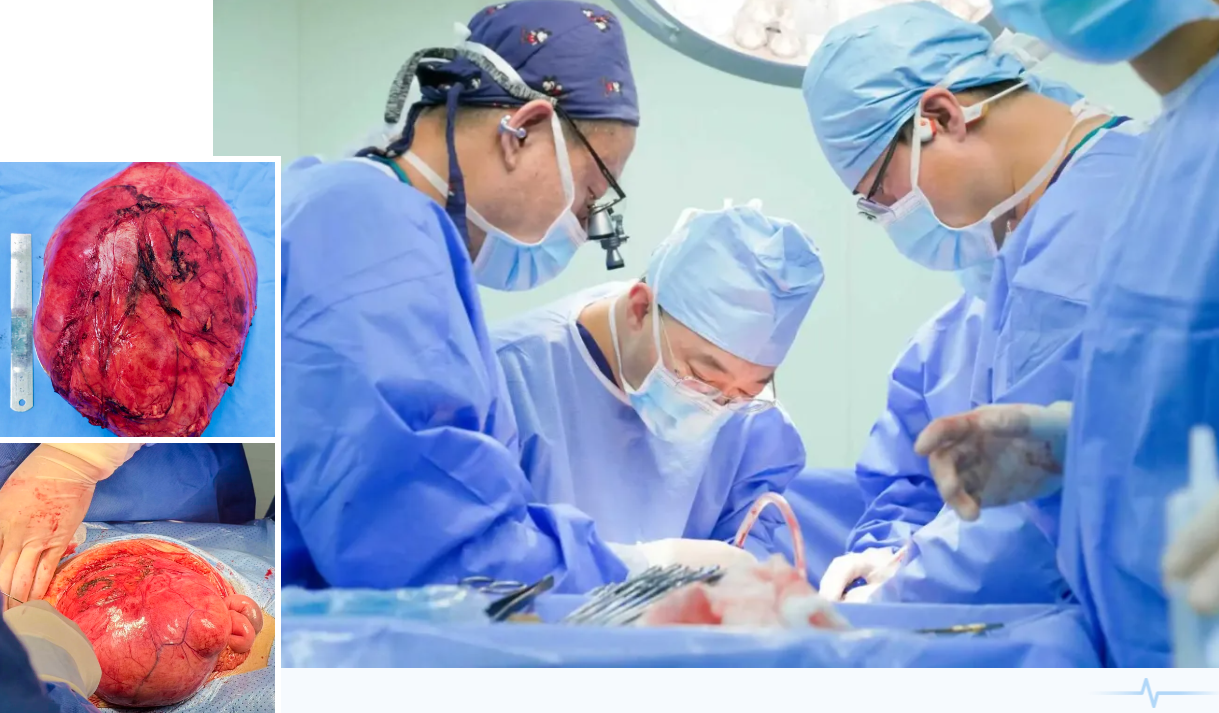 患者张女士因腹部胀痛入院就诊,检查显示其腹膜后存在巨大肿瘤,最长径达25cm,且与膀胱紧密粘连。该手术不仅需要将肿瘤完整剥离切除,更要精准修复受损的膀胱组织,既要彻底清除病灶,又要最大限度保留膀胱功能,对手术精细度、操作熟练度及团队配合度提出极高要求。