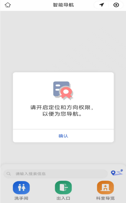 或直接进入“哈尔滨医科大学附属肿瘤医院”小程序,点击底部“首页”菜单,点击“院内导航”,同样开启手机蓝牙和定位,进入导航系统。