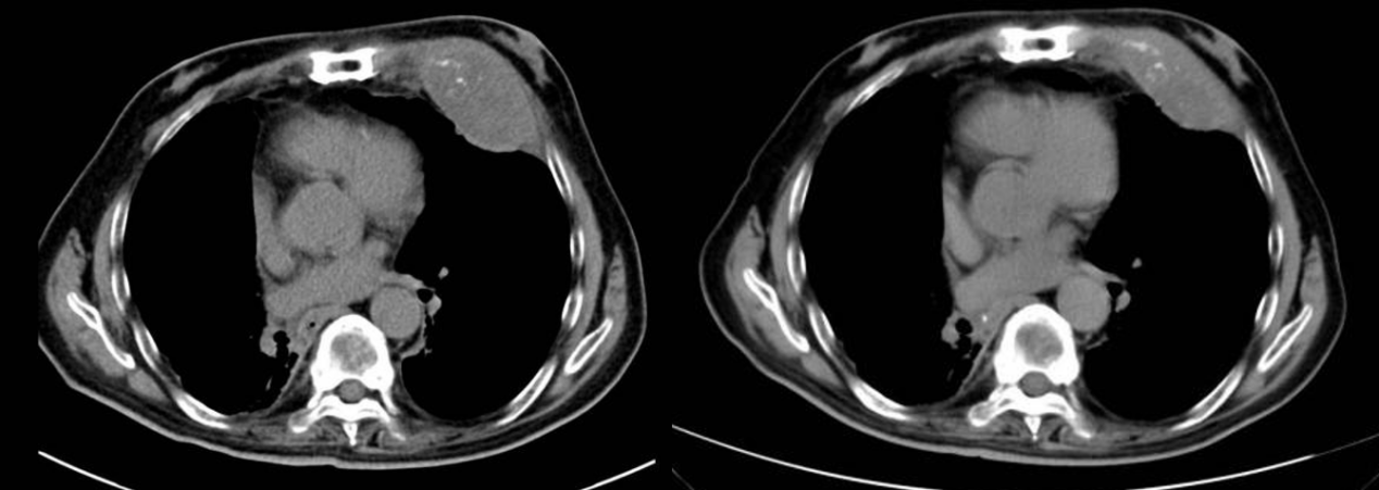 在临床效果方面,接受治疗的患者短期内骨痛即明显减轻,可逐步脱离强效止痛药,翻身、行走等日常活动能力恢复。治疗前后的CT影像对比显示,病灶及周围软组织肿物范围显著缩小,骨质破坏进展得到有效遏制,癌细胞活性明显下降。此外,该治疗方式便捷性突出,患者仅需住院2至3天即可完成治疗,全程无明显不良反应,术后无放射源残留,治疗结束当天即可恢复正常生活,且治疗费用相对较低。